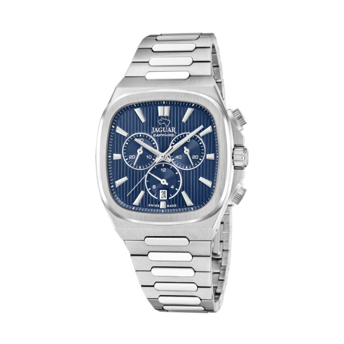 Jaguar Rondcarre herreur i stål med blå skive og chrono