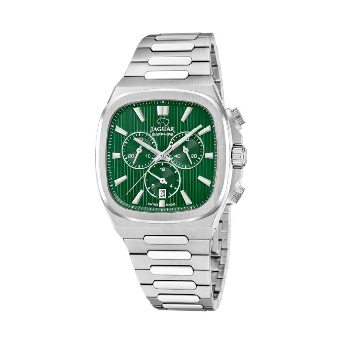 Jaguar Rondcarre herreur i stål med grøn skive med chronograf