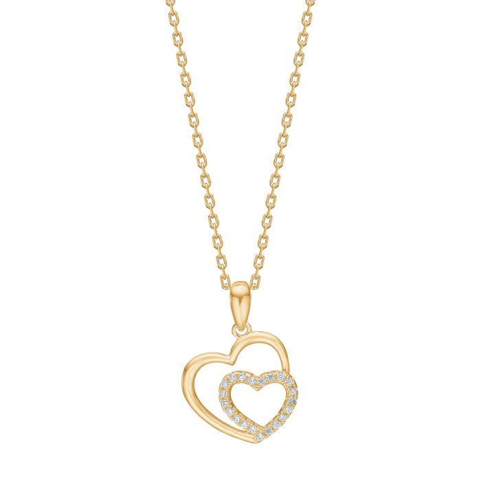 Joanli hjertehalskæde i forgyldt med cubic zirkonia - Inkl. kæde