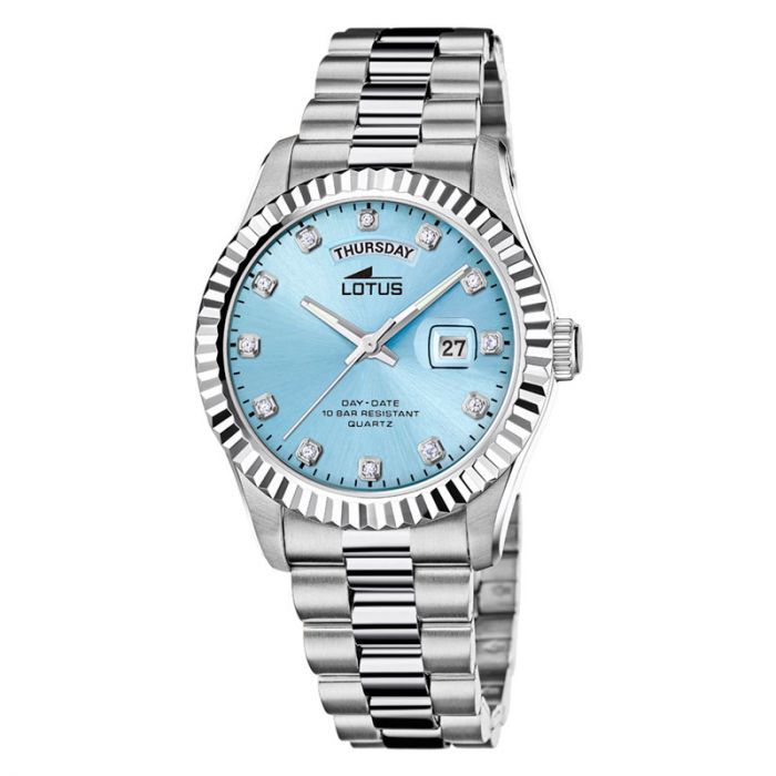 Lotus Freedom Day-Date herreur i stål med Ice Blue skive, Ø41