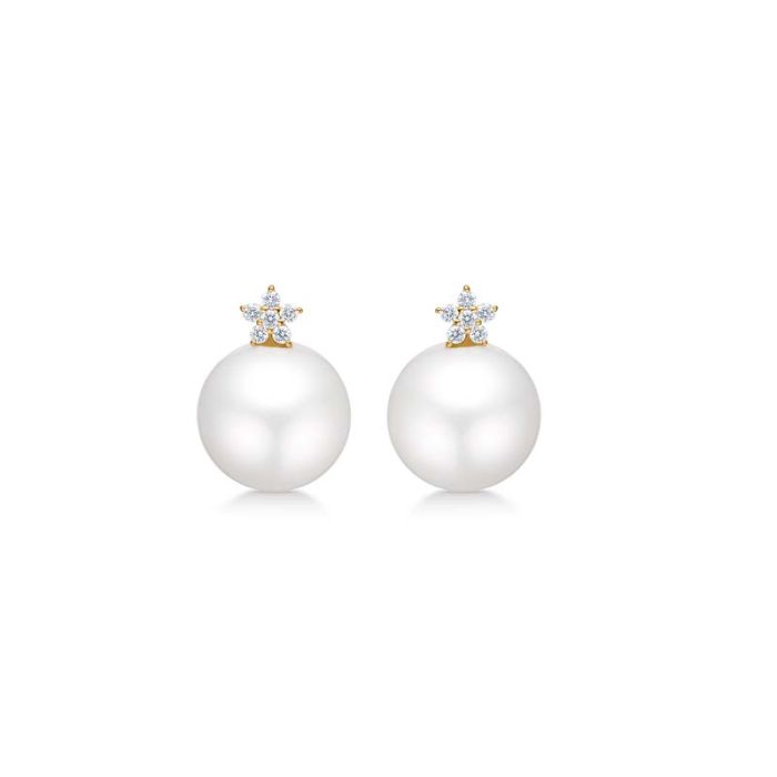 Mads Z Céleste øreringe i 14 karat guld med perle og diamant