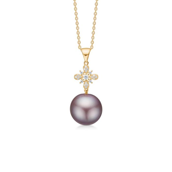 Mads Z Èlodie vedhæng i 14 karat guld med grå perle og diamant - uden kæde