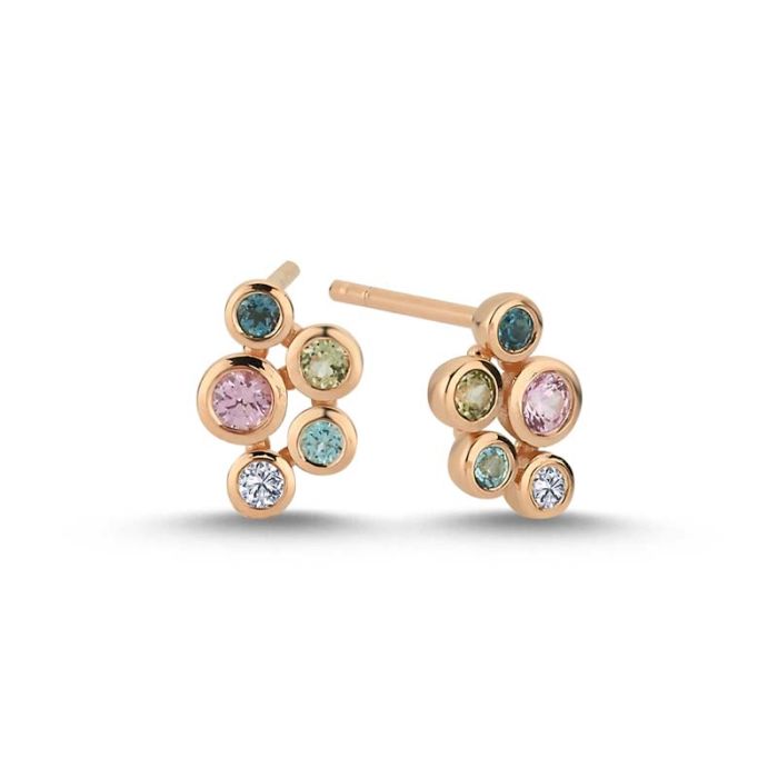 Nuran Bubbles øreringe i rosaguld med diamant, pink og grøn safir og topas