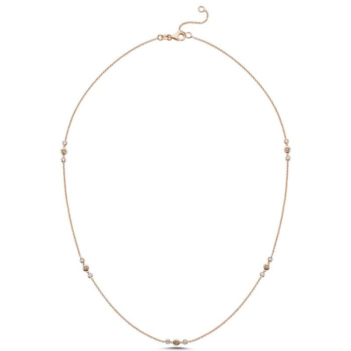 Nuran Champagne halskæde i rosaguld med champagne og hvide diamanter