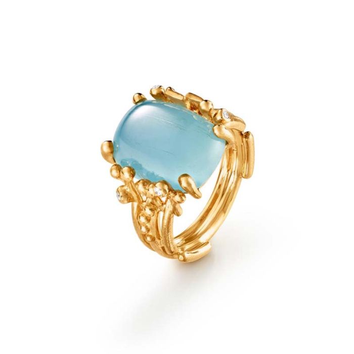 OLE LYNGGAARD COPENHAGEN BoHo 18 kt. guld ring med akvamarin og 5 brillanter
