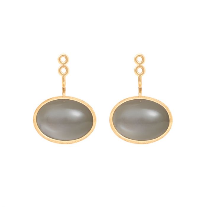 OLE LYNGGAARD COPENHAGEN Lotus 18 kt. guld ørevedhæng med grå månesten