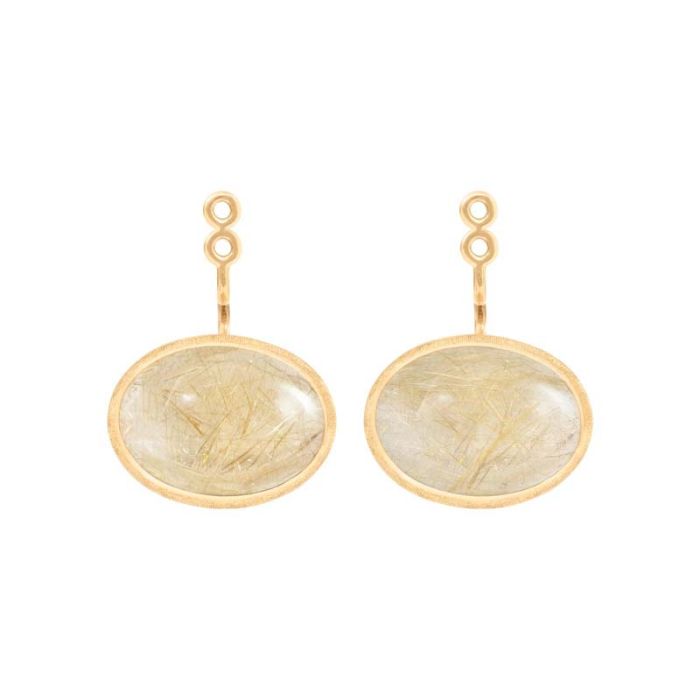 OLE LYNGGAARD COPENHAGEN Lotus 18 kt. guld ørevedhæng med rutilkvarts, stor