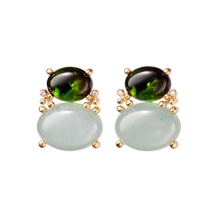 OLE LYNGGAARD COPENHAGEN BoHo øreringe i 18 karat guld med grøn turmalin, akvamarin og 4 diamanter - PAR