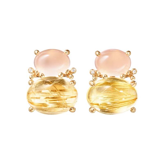 OLE LYNGGAARD COPENHAGEN BoHo ørestikker i guld med rosa kvarts, rutil kvarts og diamanter