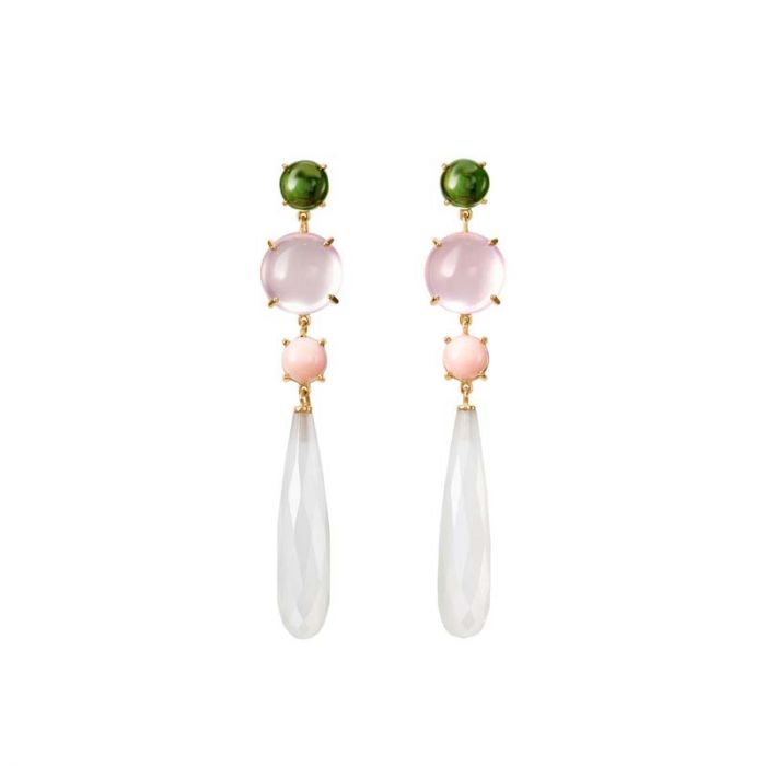 OLE LYNGGAARD COPENHAGEN Lotus øreringe in 18 karat guld med grøn turmalin, rosaquartz, rosa koral og hvid månesten - PAR