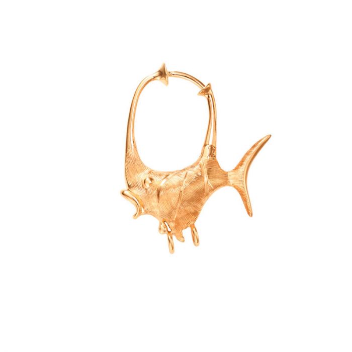 OLE LYNGGAARD COPENHAGEN Young Fish lille ørering i 18 kt guld med 2 øjne til vedhæng - STK