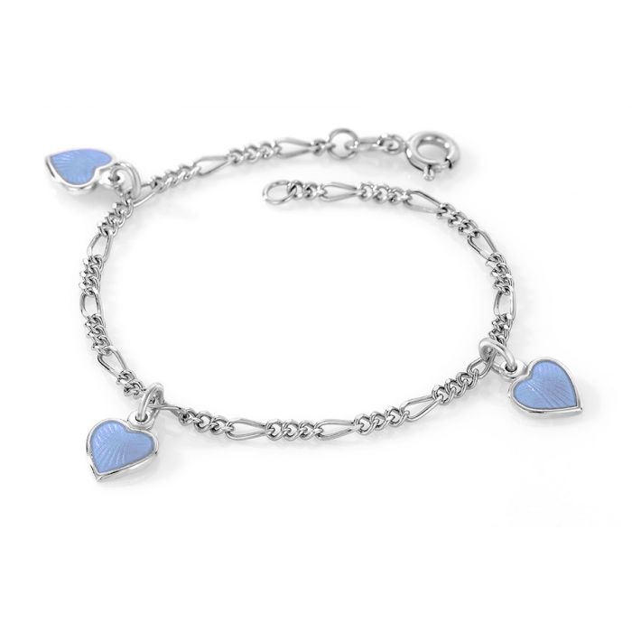 Pia & Per charms børnearmbånd med hjerter i sølv, lys blå