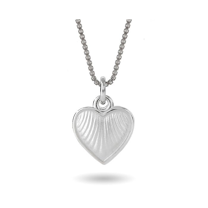 Pia & Per mellem børne hjertehalskæde i sølv, hvid