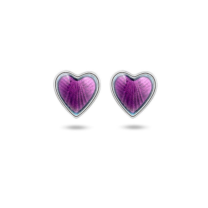 Pia & Per børne hjerteørestikker i sølv, lilla