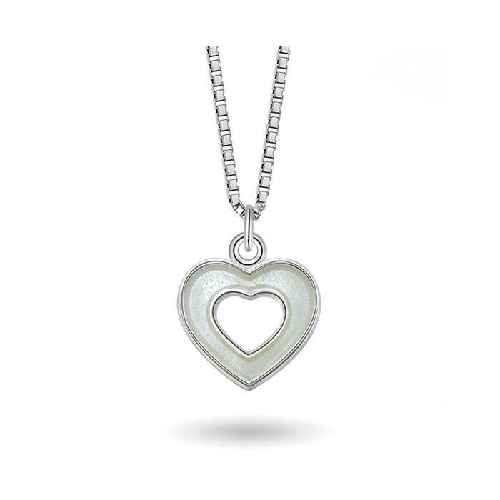 Pia & Per børnehalskæde med åbent hjerte i sølv, hvid