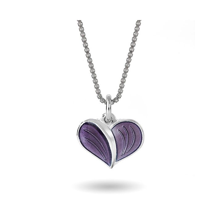 Pia & Per børnehalskæde med hjerte i sølv, lilla