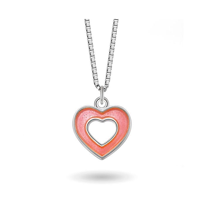 Pia & Per børnehalskæde med åbent hjerte i sølv, rosa
