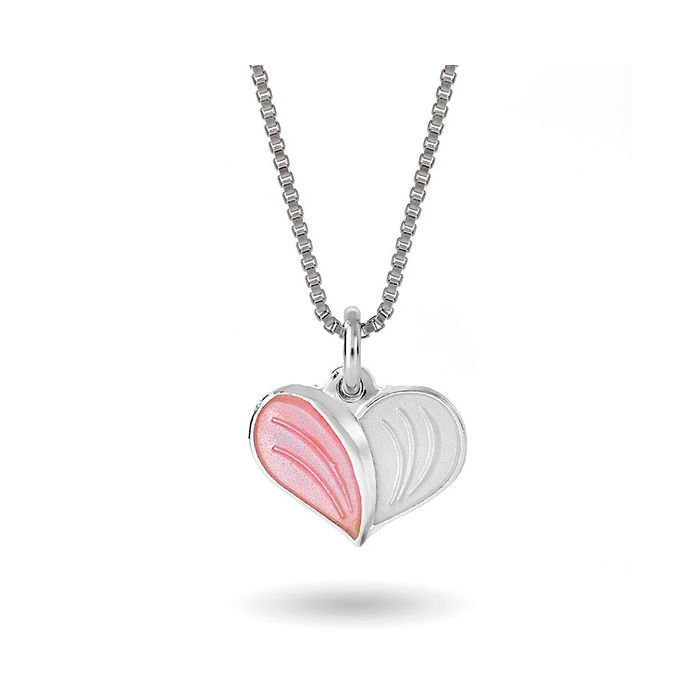 Pia & Per børnehalskæde med hjerte i sølv, rosa og hvid