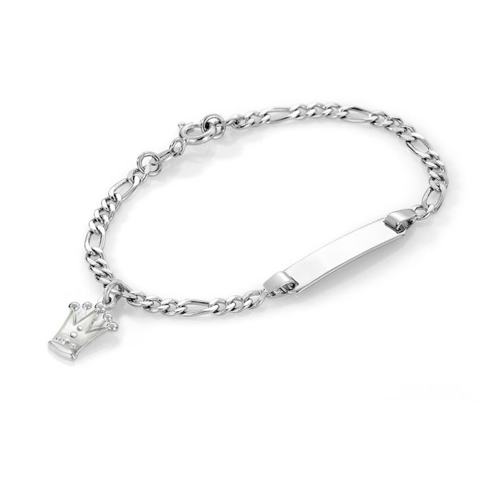 Pia & Per børne ID armbånd i sølv med prinsessekrone, hvid