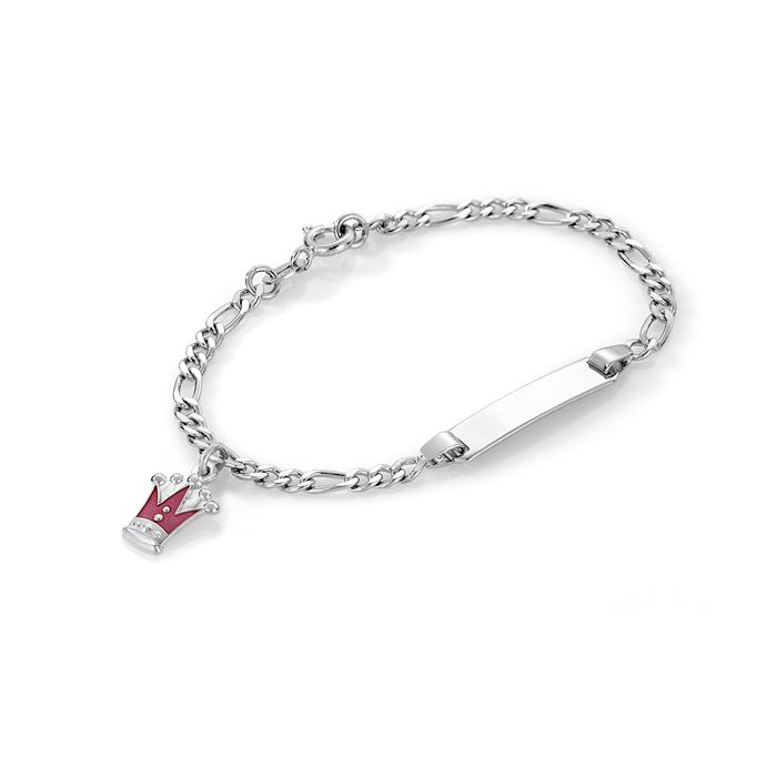 Pia & Per børne ID armbånd i sølv med prinsessekrone, lilla