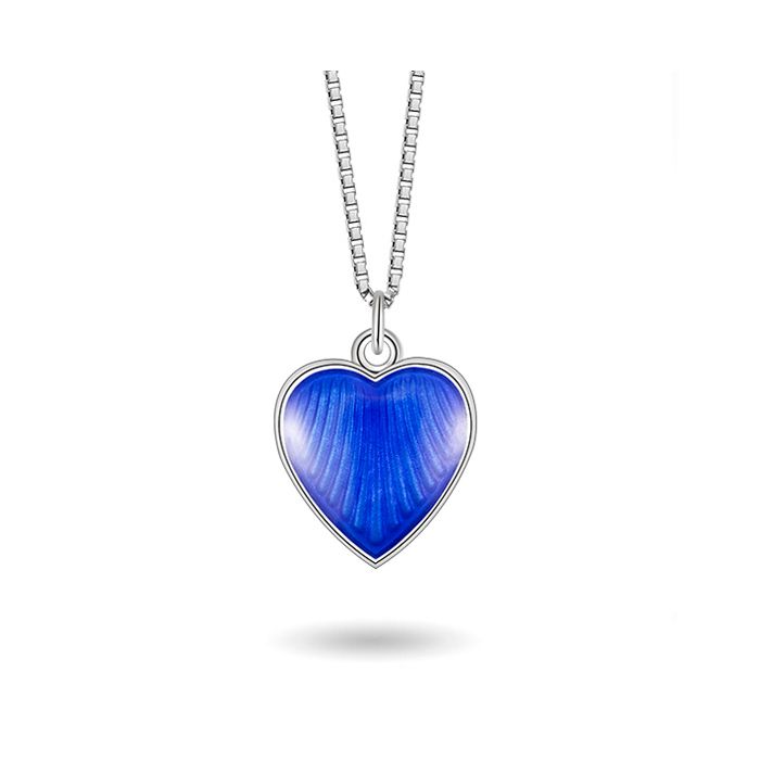 Pia & Per stor børne hjertehalskæde i sølv, blå
