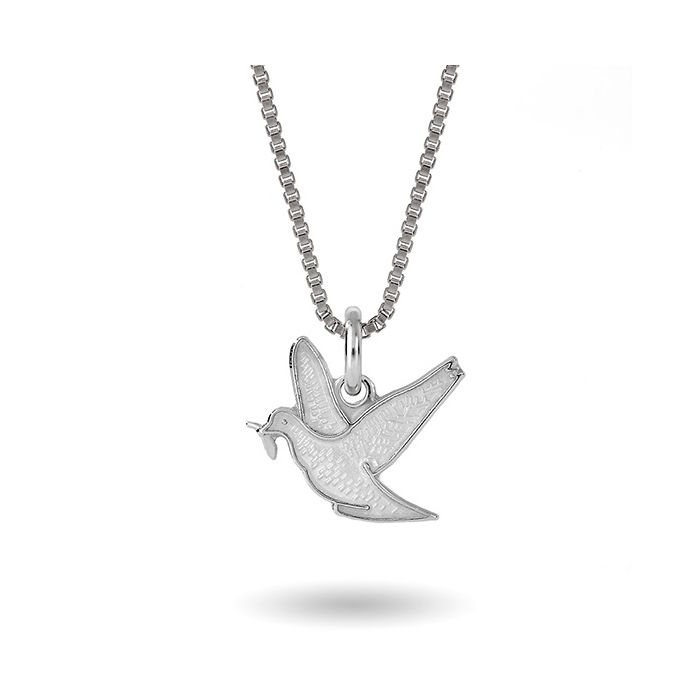 Pia & Per børnehalskæde med fredsdue i sølv, hvid