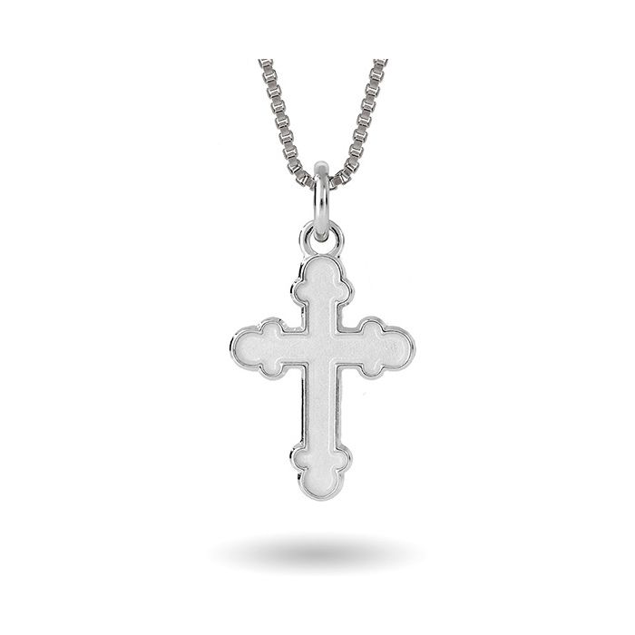 Pia & Per børnehalskæde med kors i sølv, hvid