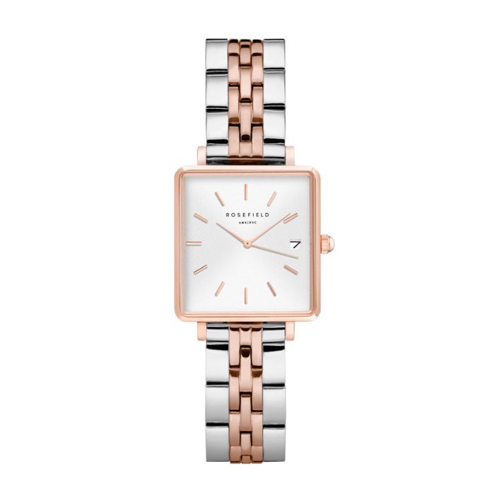Rosefield The Boxy dameur i stål/rosa med lænke - 22x24 mm