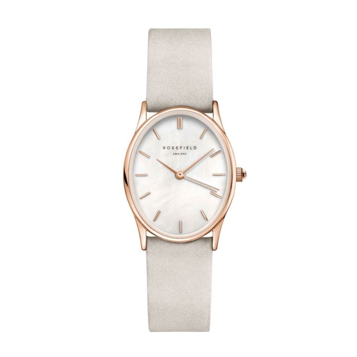 Rosefield The Oval dameur i rosa med grå læderrem - 24x29 mm