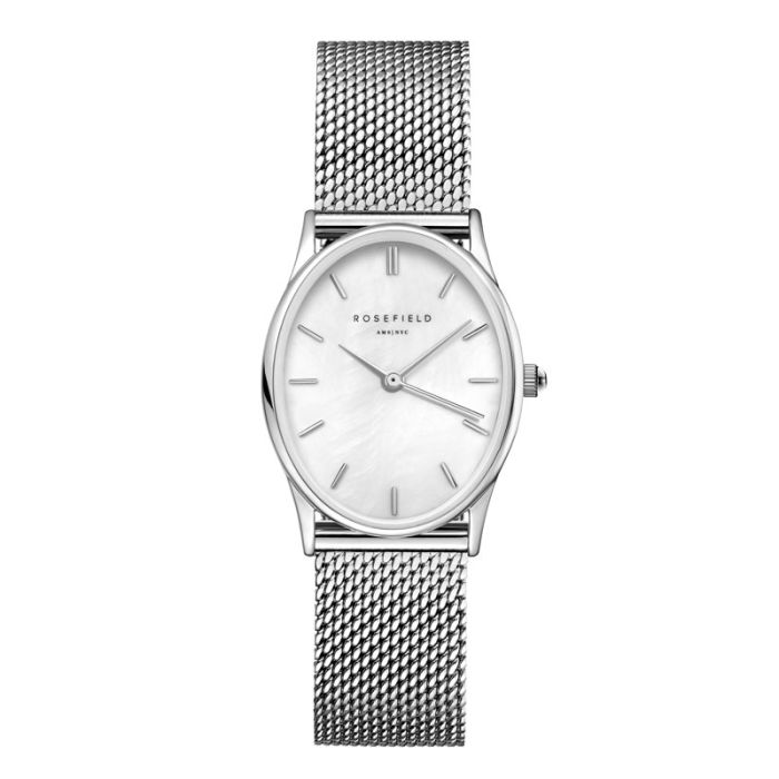 Rosefield The Oval dameur i stål med meshlænke og perlemorsskive - 24x29 mm