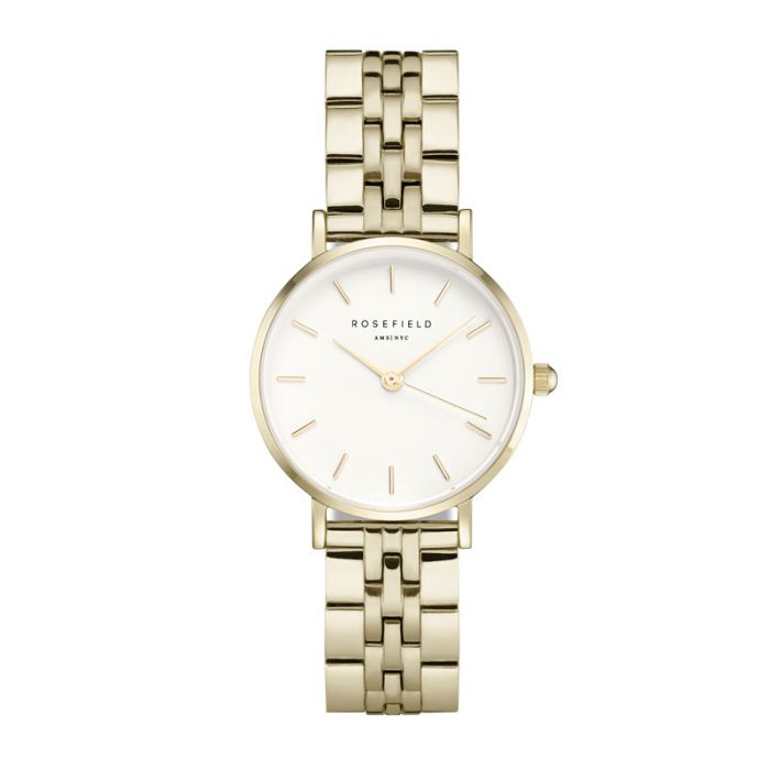 Rosefield The Small Edit dameur i guldfarvet med lænke og hvid skive - Ø26