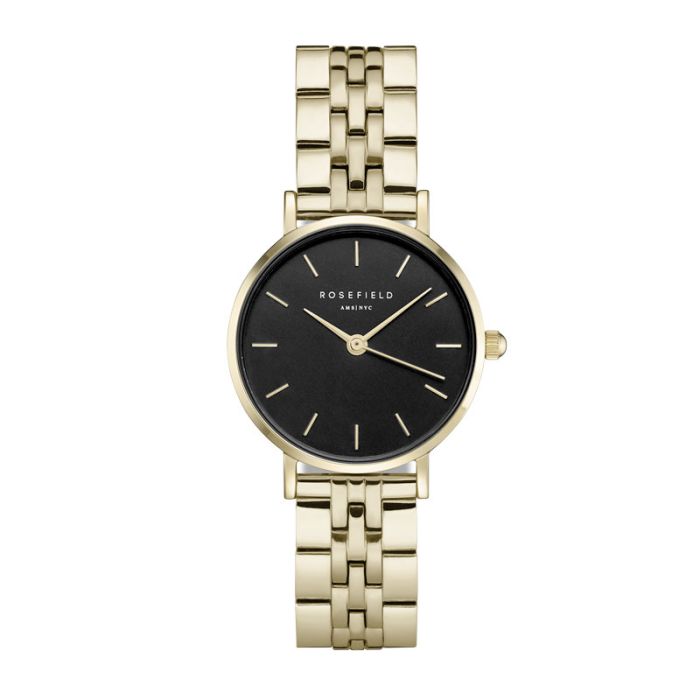 Rosefield The Small Edit dameur i guldfarvet med lænke og sort skive - Ø26