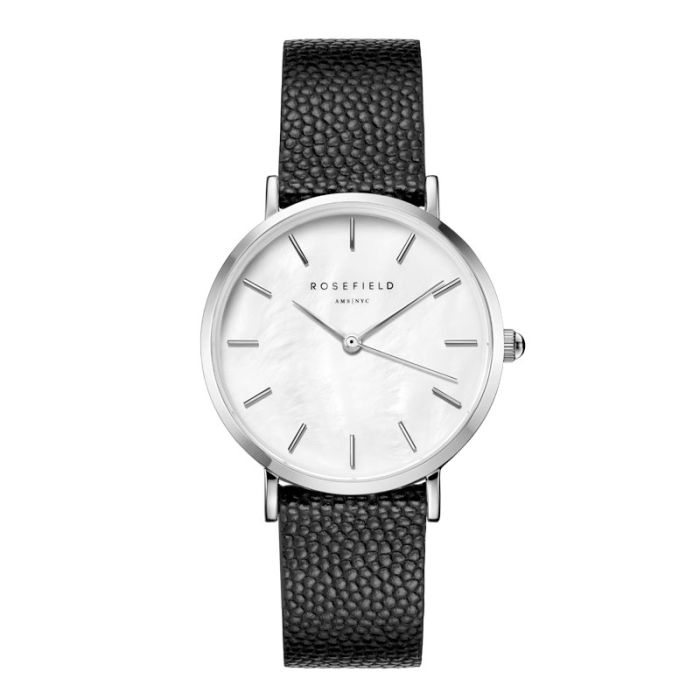 Rosefield The Upper East Side dameur i stål med sort læderrem - Ø33
