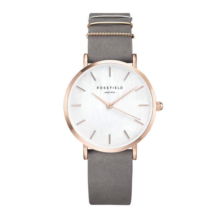 Rosefield The West Village dameur i rosa med grå læderrem og perlemorsskive - Ø33