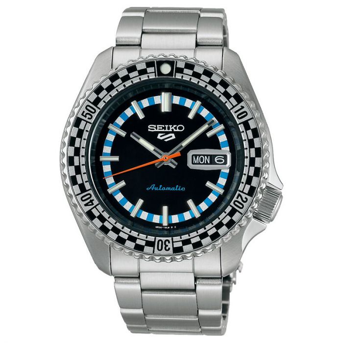 Seiko 5 Sports herreur i stål med sort urskive