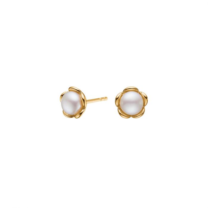 Siersbøl forgyldt ørestikker Flower med ferskv. perle