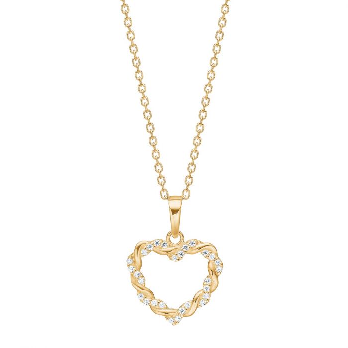Siersbøl hjertevedhæng i 8 kt. guld med cubic zirkonia - Inkl. forgyldt kæde