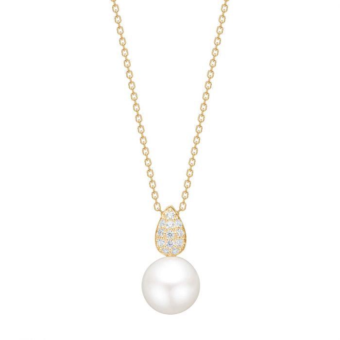 Siersbøl vedhæng i 8 kt. guld med zirkonia og perle - Inkl. forgyldt kæde