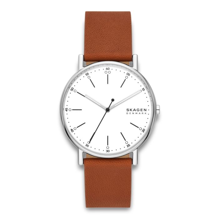Skagen Signatur herreur i stål med brun læderrem