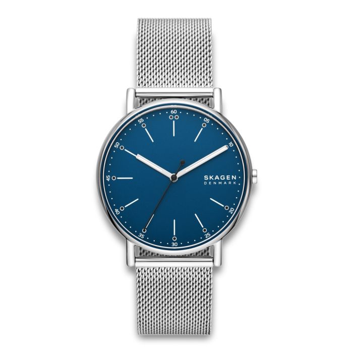 Skagen Signatur herreur med meshlænke og blå urskive
