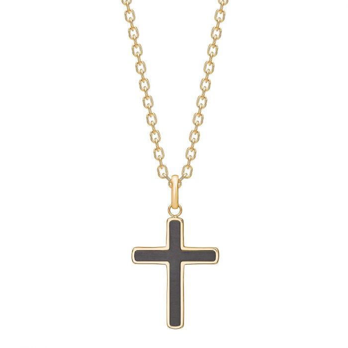 SON of NOA kæde i guldfarvet - stål kors med carbon