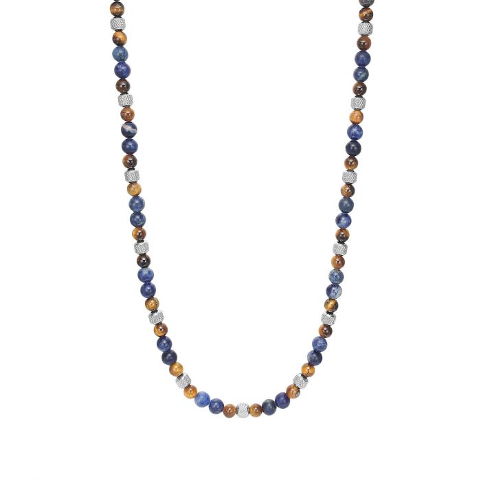 SON of NOA stenkæde i stål, gul tigerøje og sodalit - 6mm