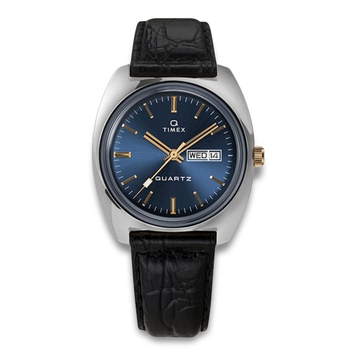 TIMEX Q Dress Day/Date i stål med sort læderrem