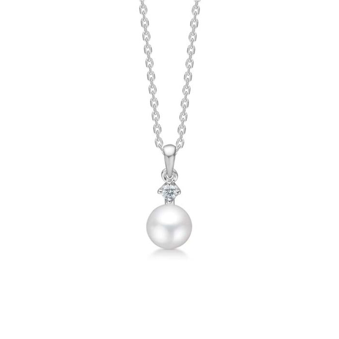 Mads Z Crown Pearl 14 kt. hvidguld vedhæng med diamant og perle