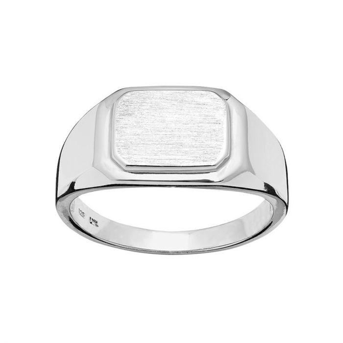 Herrering med matbørstet plade i sølv
