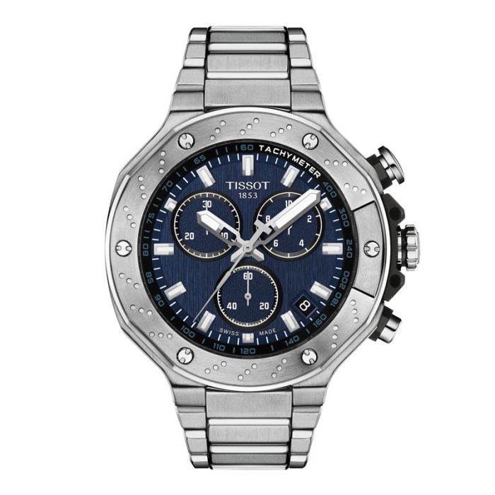 Tissot T-Race Chronograph herreur i stål blå urskive med lænke