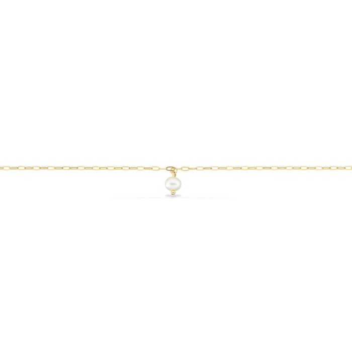 Scrouples Ankelkæde links med ferskvandsperle 23+3cm i 8 kt guld