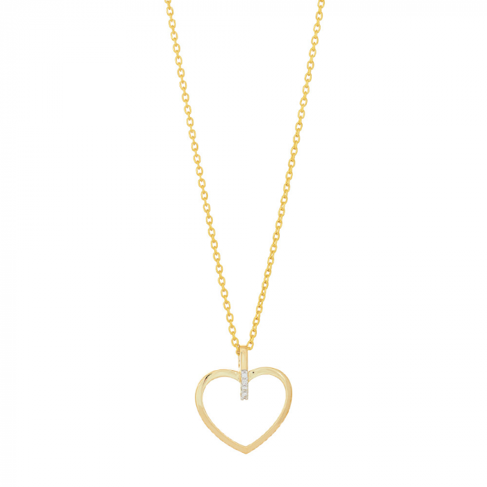 Siersbøl 14kt. guldhjerte med diamant på i alt 0.02ct W/SI og forgyldt kæde