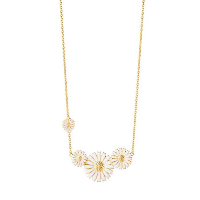 Georg Jensen Daisy halskæde forgyldt og hvid emalje