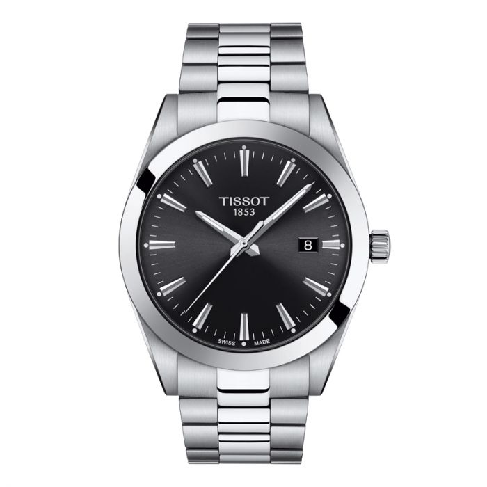 TISSOT Gentleman armbåndsur i stål med lænke og sort skive